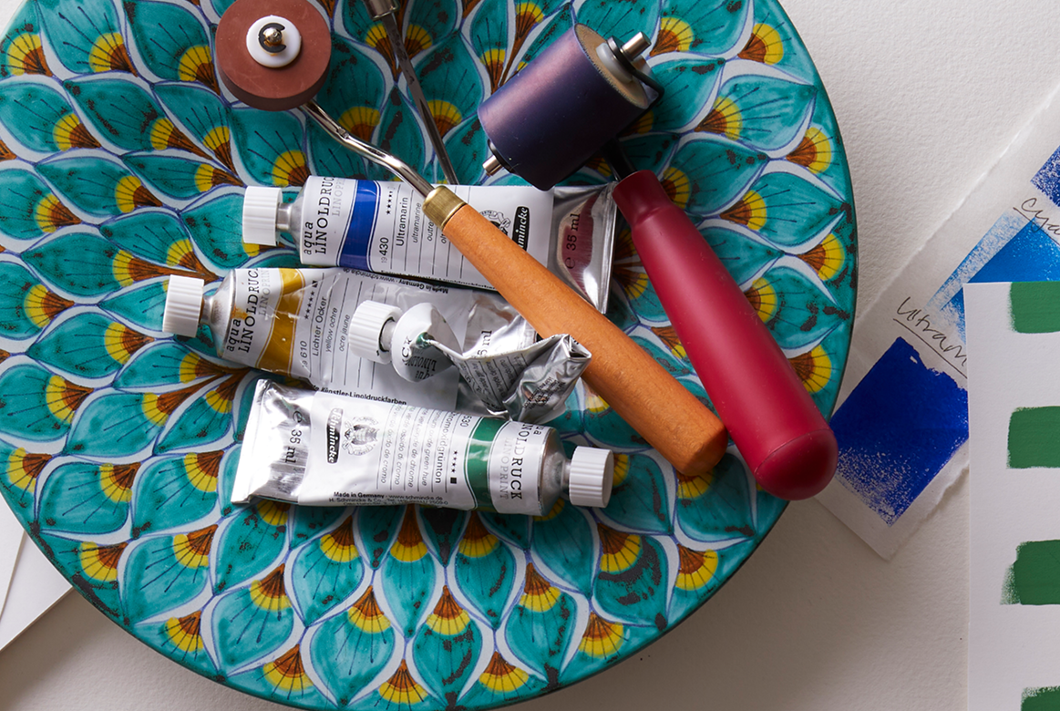 We practice the craft of linocut printmaking to capture the spirit of remarkable plants.