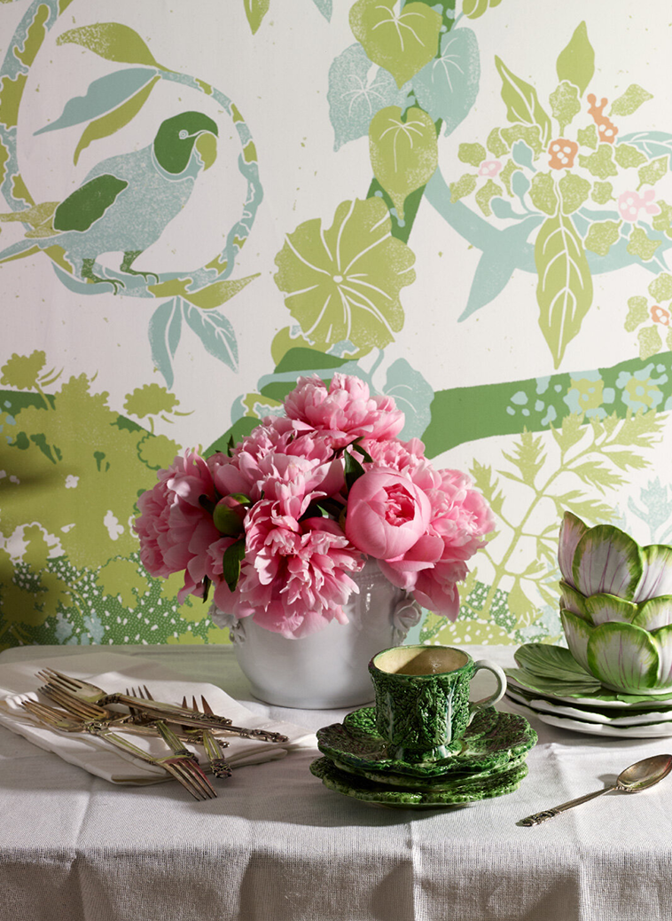 Each design in this collection- Wild Ramps, Virginia Strawberry and Winter Wheat- has a singular story and a special place in American foodways and culture. Inspiration from French Domino papers to Arts and Crafts textiles to Delft tiles (all heirlooms in the conventional sense) gave form to Heirloom’s designs.