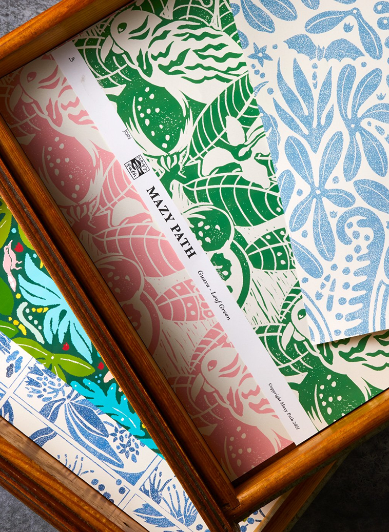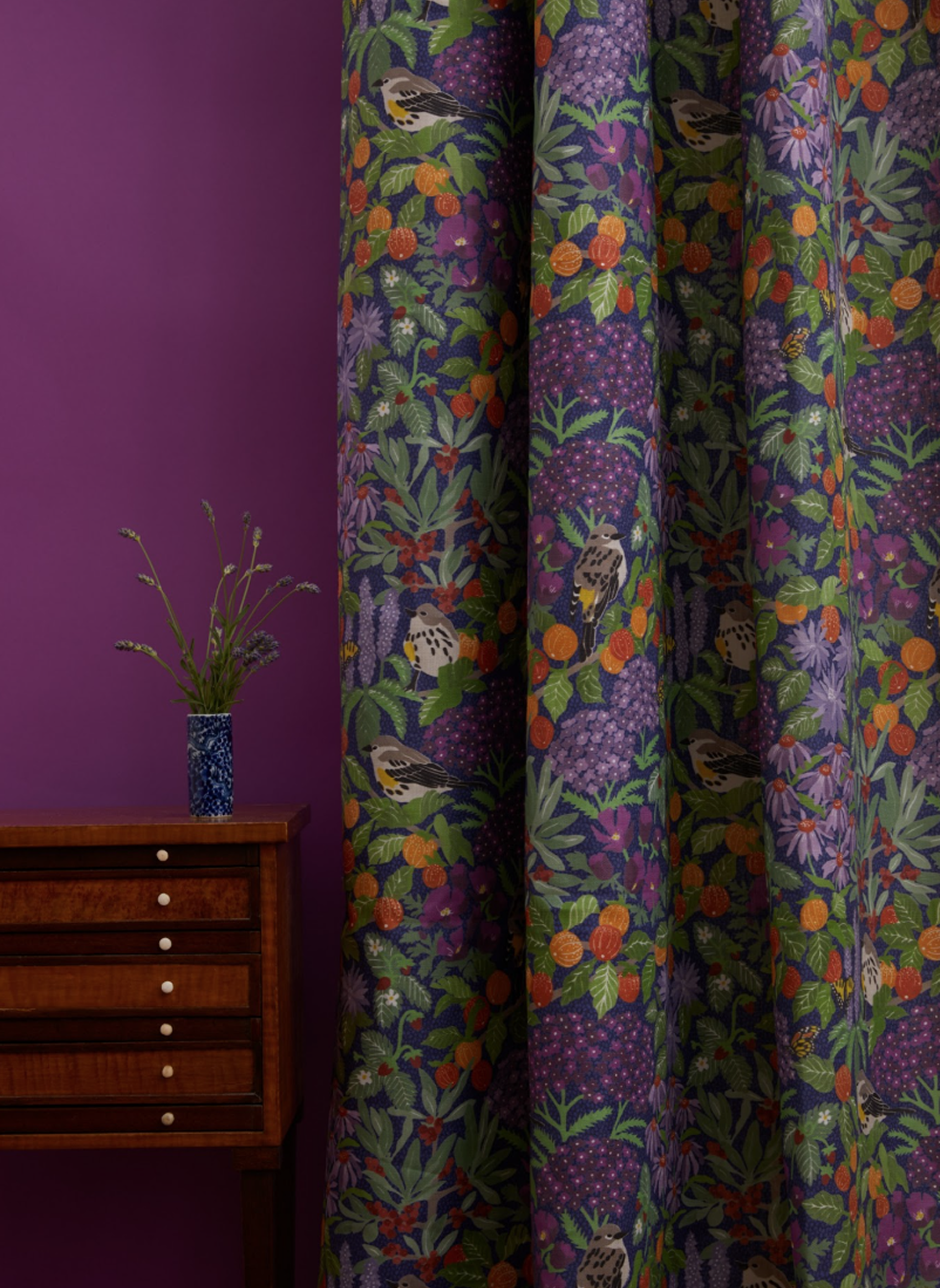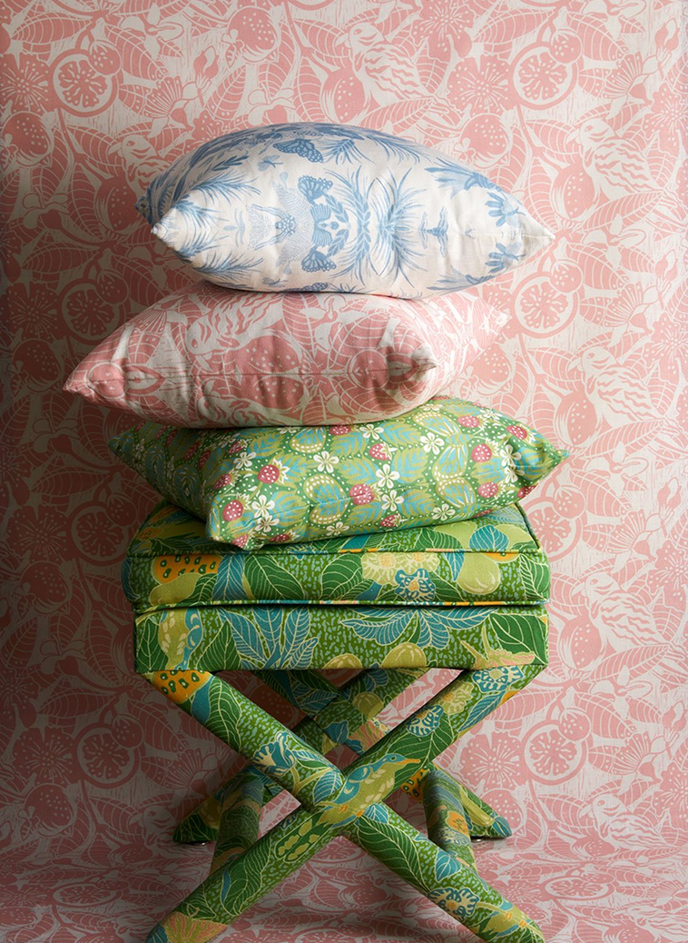 Mazy Path is inspired by remarkable plants. As we expand our offerings to include textiles, we find inspiration in gardens as well. Gardens thrive when there’s a combination of diversity and interdependence. With an array of printed fabrics, our Companion collection adds variety and depth to the Mazy Path line. Companion’s fabrics (which are based on our wallpaper patterns Pawpaw, Hummingbird, Virginia Strawberry, Guava and Winter Wheat) are printed on 100% Belgian linen in Pennsylvania. With their supple hand, they hug the contours of furniture frames and flow as drapery.