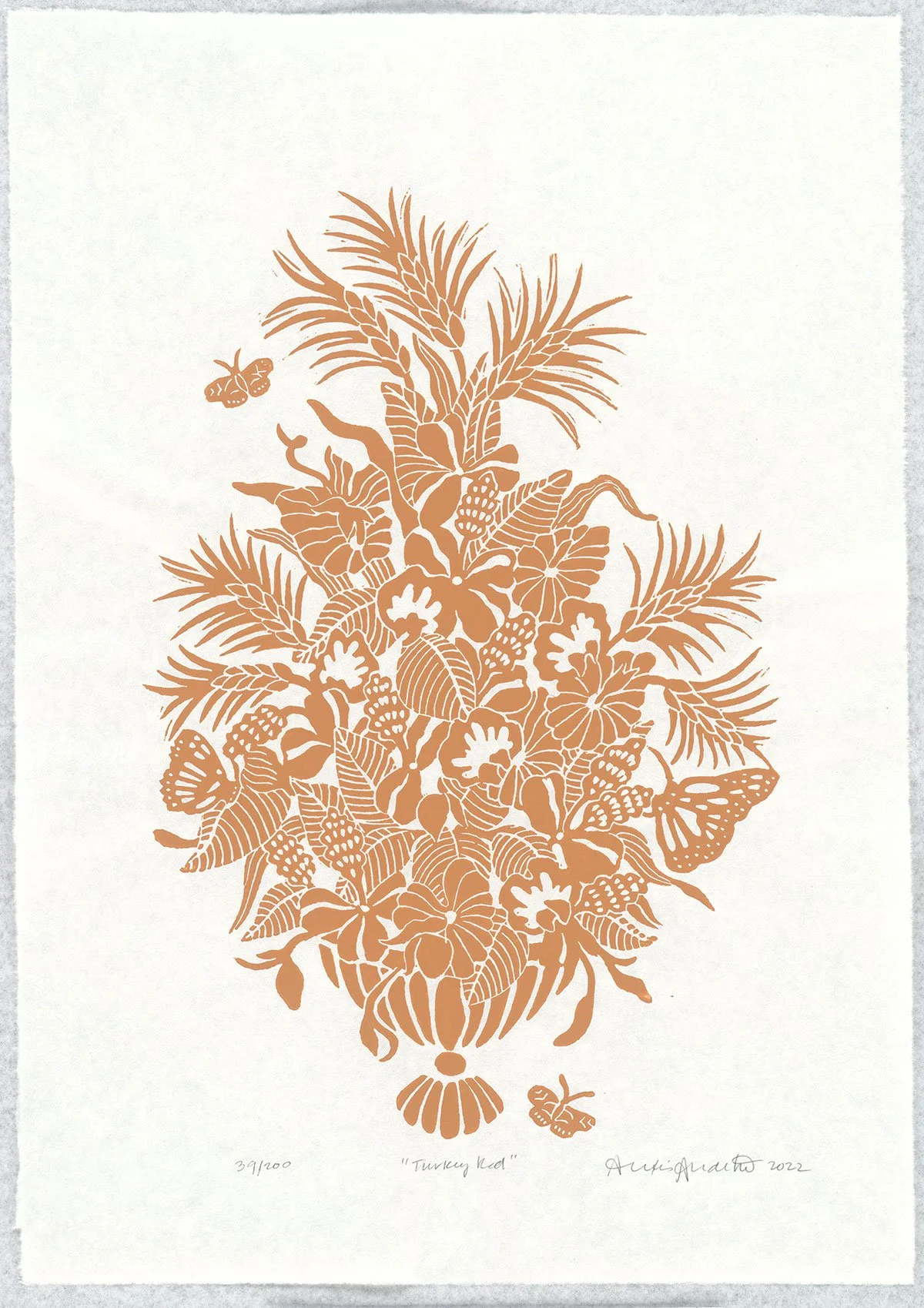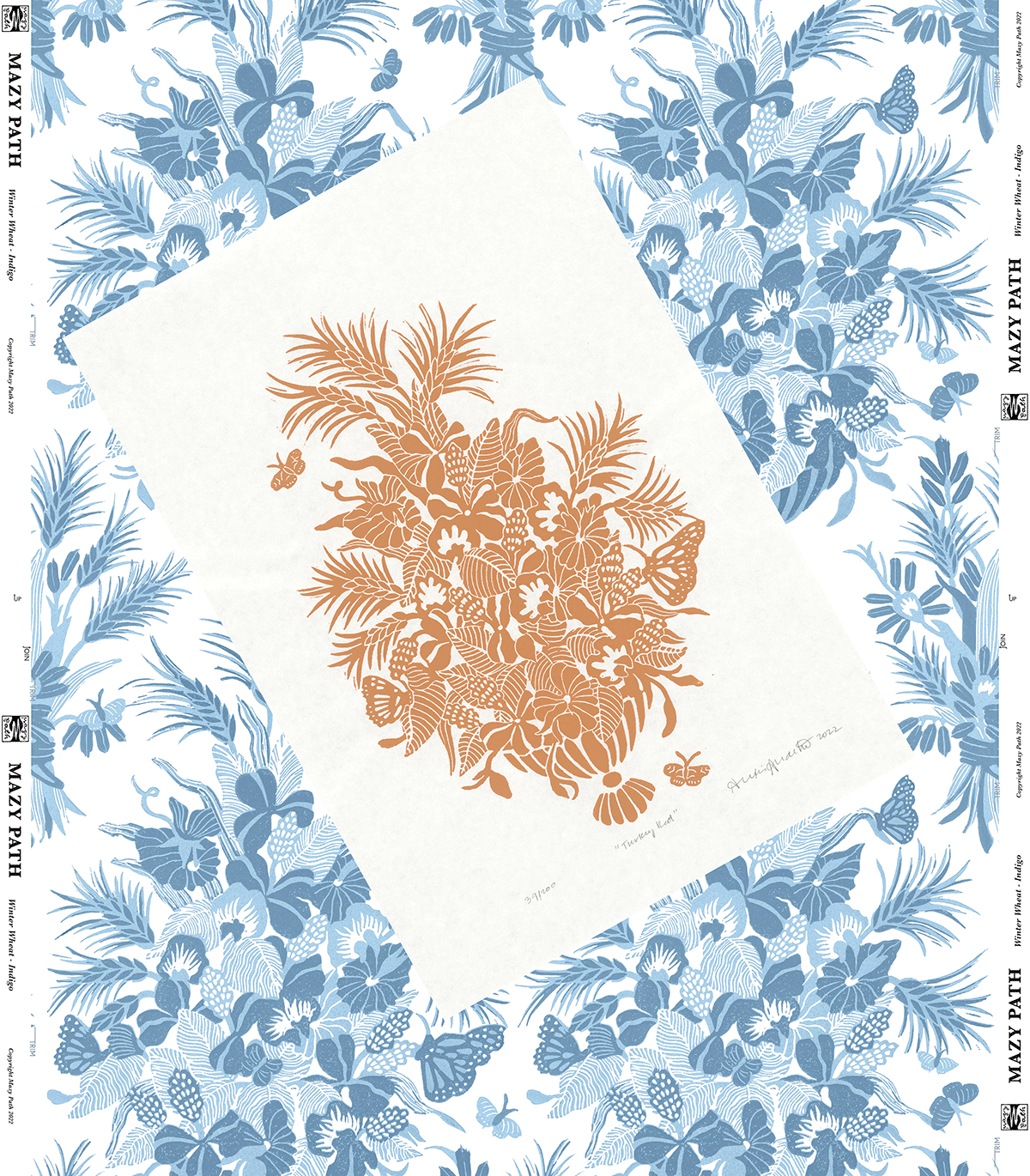 When I was working on our wallpaper, Winter Wheat, a friend admired an early proof and suggested that I consider creating relief prints which people could frame and hang on their walls. In other words, art for art’s sake. I took her advice! Here's the story of how our Winter Wheat wallpaper and our Turkey Red print came to be:
